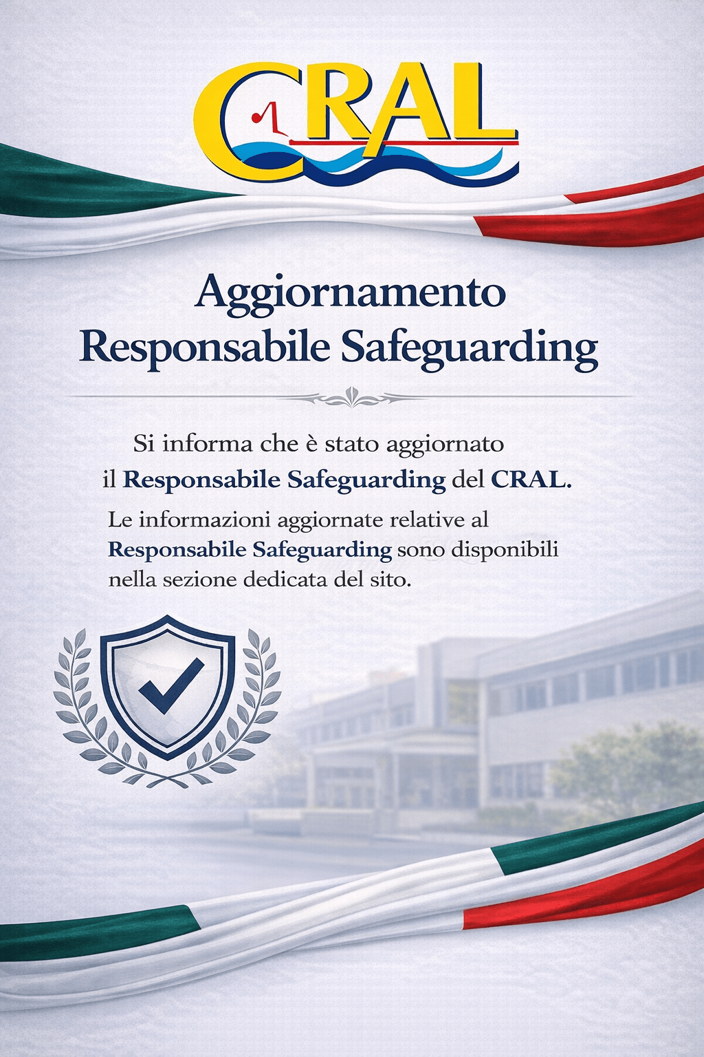 Si informano tutti gli associati che è stato aggiornato il Responsabile Safeguarding del CRAL.