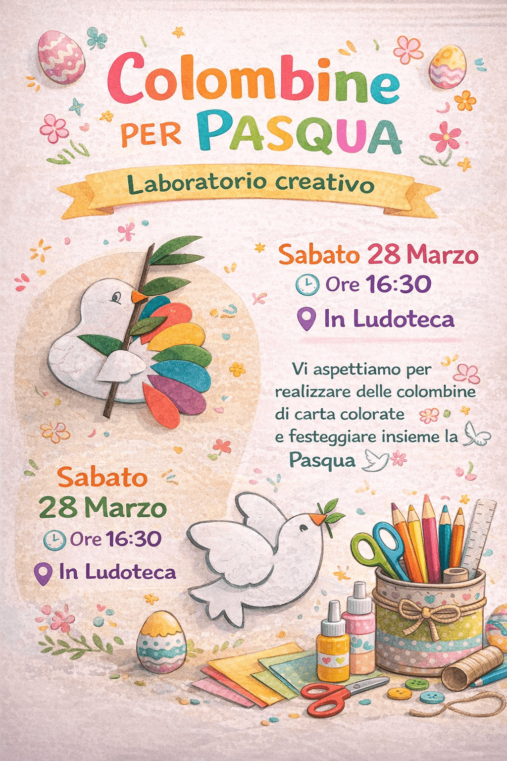 Sabato pomeriggio i bambini realizzeranno delle coloratissime colombine di carta, simbolo di pace e di primavera. 🕊️🌸